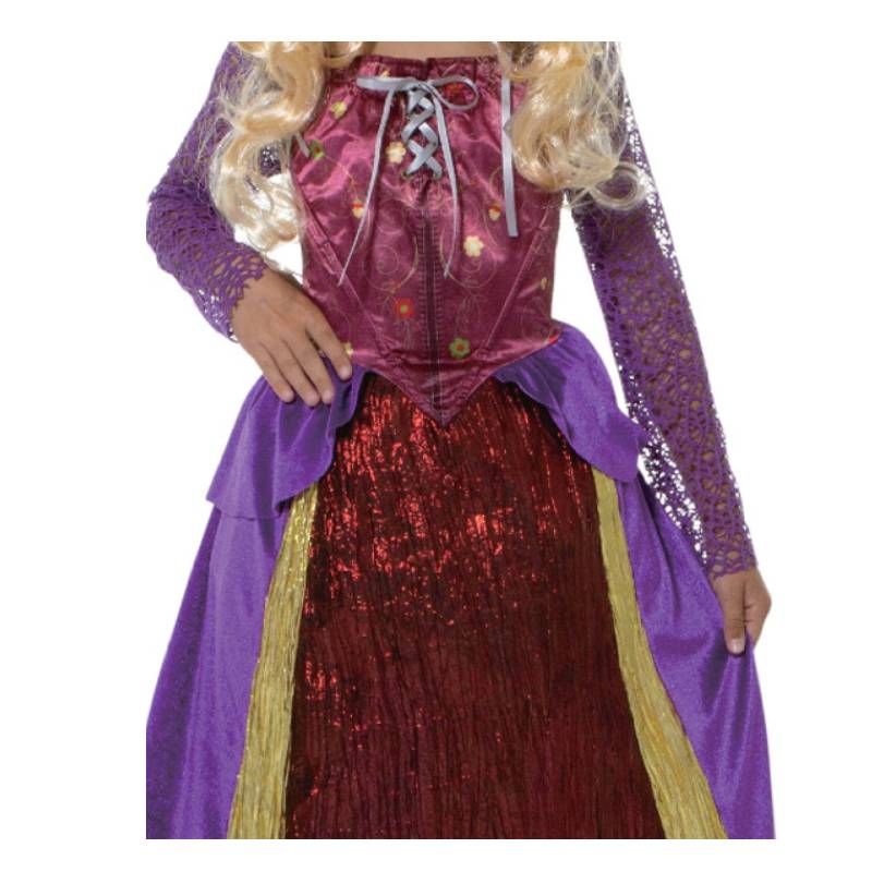 Silly Witch Hocus Salem Sister is fashioned after Sarah Jessica Parker’s character, Sarah Sanderson in the classic movie, Hocus Pocus. Sarah Sanderson, the youngest of the Sanderson sisters in “Hocus Pocus,” is a delightful blend of ditzy charm and dangerous magic. She is airheaded and flirty, a silly goofball, and easily distracted. She’s obsessed with boys and prone to daydreams, especially about handsome young men. This can make her a bit unreliable and slow on the uptake compared to her sisters. Despite her airheadedness, Sarah possesses a powerful and enchanting singing voice. She uses this to lure children into danger with her signature song, “Come Little Children.” Her song acts like a siren’s call, enchanting and mesmerizing her targets. Silly Witch Hocus Salem Sister craves approval and validation, especially from her older sisters. She often seeks out praise and can be easily manipulated by flattery. Despite being a villain, Sarah shows occasional glimpses of a kinder heart. She can be empathetic and even express remorse, especially towards children. This inner conflict adds a layer of complexity to her character. Sarah has long, flowing blonde hair and typically wears clothing in shades of pink and purple. She’s known for her bright, enthusiastic expressions and dramatic flair. Sarah Sanderson is a captivating character. She’s a danger with her siren song, but her airheadedness and moments of kindness make her strangely endearing.
