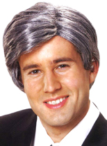 This Silver Fox Adult Wig is black totally shot through with gray. A very good looking wig that could be used for any male character or with a bit of combing, a female character as well. This is a good one.