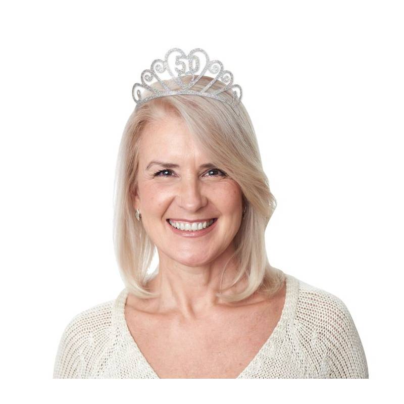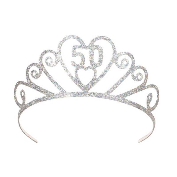 Silver Glittered “50” Tiara is perfect for birthday and milestone celebrations.