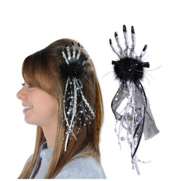 Skeleton Hand Hair Clip is a cute and easy Halloween accessory. Wear this to the office or out on the town. This hair piece can be used as a costume accessory or accent your everyday attire.