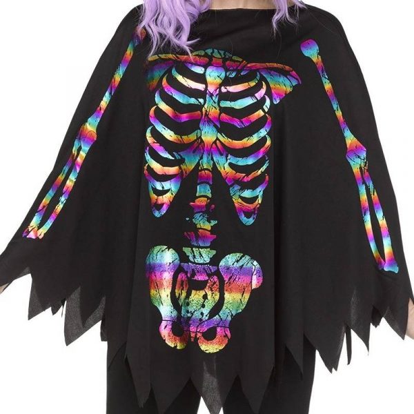 Skeleton Poncho Metallic Rainbow is the perfect low maintenance, easy costume. Wear this for Halloween, themed parties throughout the year, trick-or-treating, office celebrations, school events, costume parties, and more.