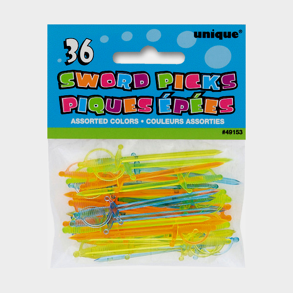 Package includes 36 picks. Each measures 3″ long. There are 9 in each color: blue, green orange, yellow. Perfect for skewering hors d’oeuvres and appetizers.