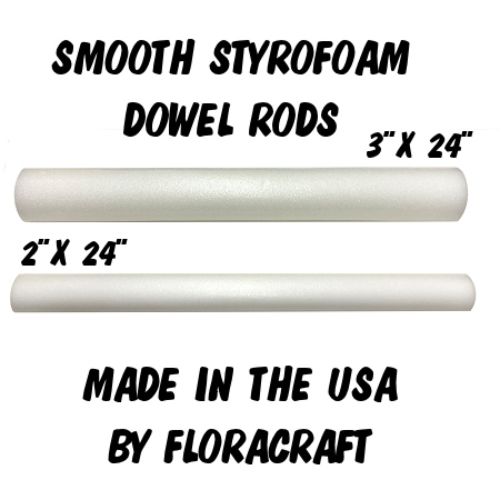 Use for crafts, costuming, props, weddings, etc! these extruded dowels are made in the USA by FloraCraft and measure 2″ by 24″ and 3″ by 24″.