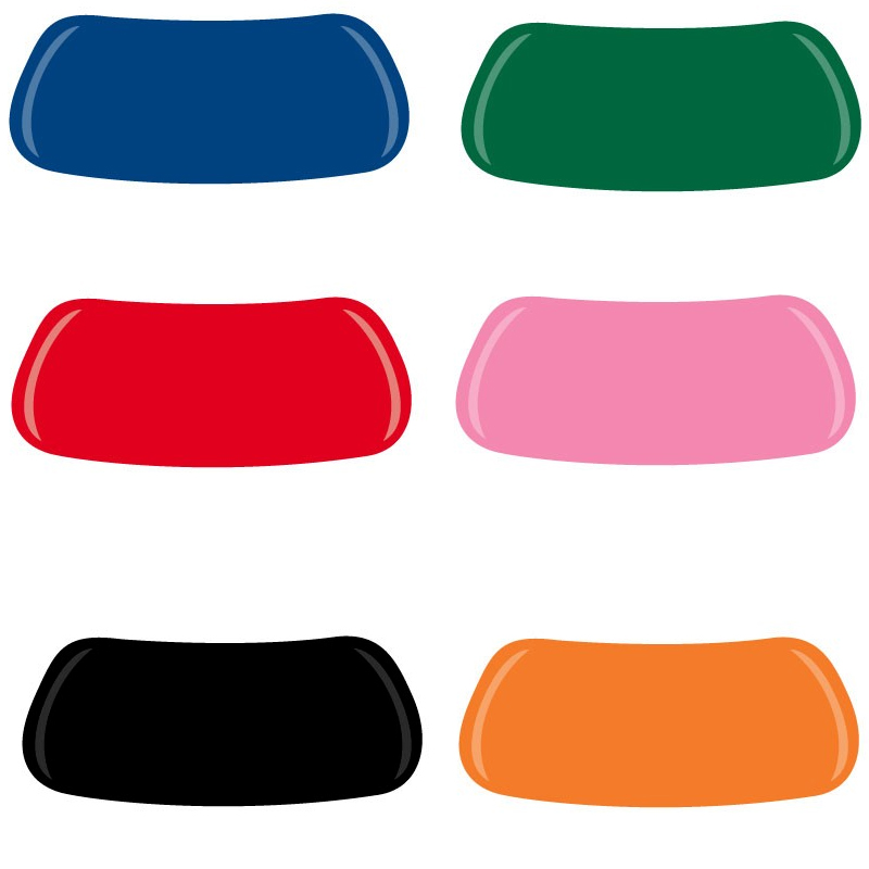 Solid Color Eyeblack comes in orange, green, red, blue, black and pink. They measure about 3″ wide across the under part of your eye and .5″ from top to bottom. Black and pink have 3 pairs (6 strips) the rest have 2 pairs (4 strips). Use pink for Breast Cancer Awareness.