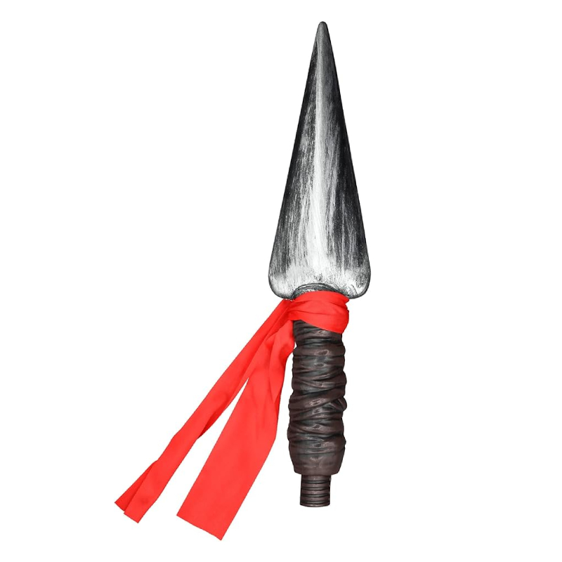 The Spear with Red Tie is a versatile accessory that can be paired with various costume themes. It adds a whimsical and unexpected touch to characters such as jesters, fantasy adventurers, or eccentric warriors. Beyond its decorative appeal, the spear can also serve as a functional prop for costume performances or themed events, enhancing the character’s appearance and narrative. Like all costume accessories, safety is important. While the spear may have a realistic appearance, precautions are taken to ensure that it is safe for use in various settings, especially when handling by children or in crowded environments.