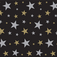 Black background with gold and silver stars measures 4′ x 30′. Covers 120 square feet of wall space. Attach to wall with Sticky Tack.
