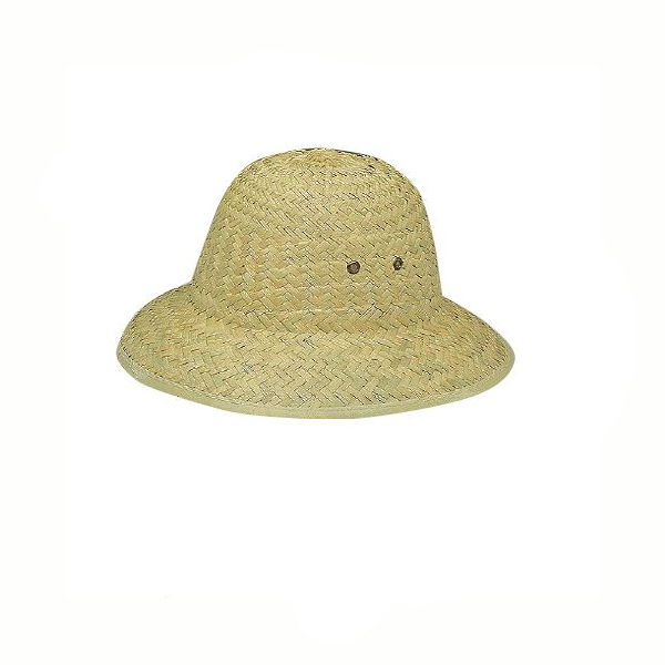 Natural straw pith helmet with brown vinyl band.