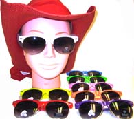 These sunglasses have a plastic upper frame and silver wire frame on the bottom of the lenses.