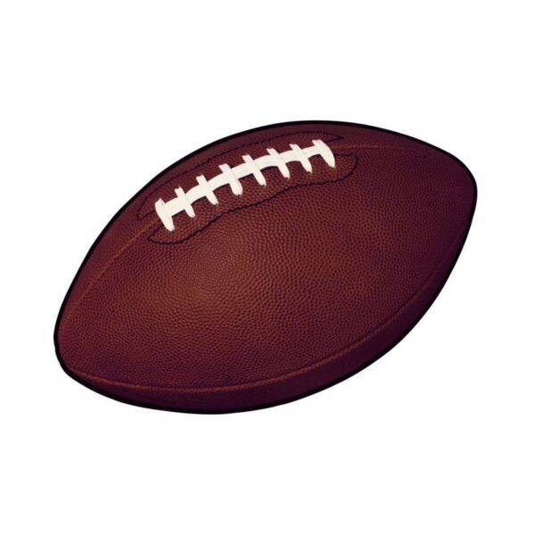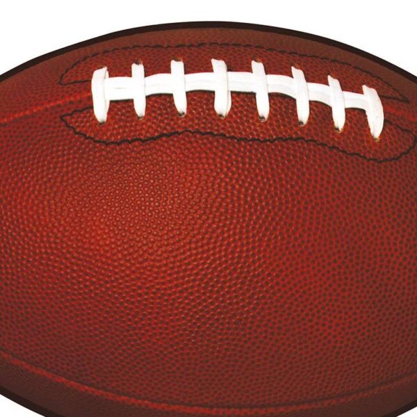 Football Cutout measures 11″ x 18″. It is printed on both sides. It is in the shape of a classic football with white lacing in the middle.