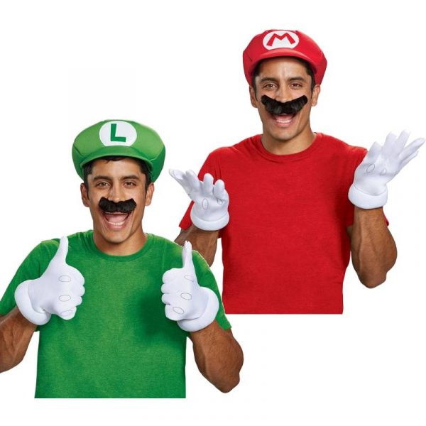 Wear Super Mario Brothers Luigi or Mario Kit as one of a group Halloween costume! Choose from Mario or Luigi. Fabric Super Mario Hats fit most adults.