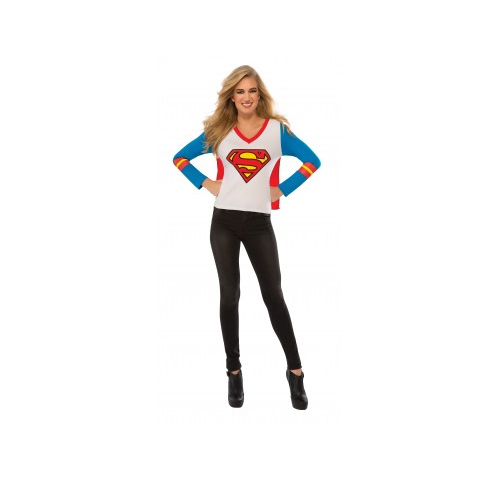 Super girl sporty tee costume v-neck t-shirt with attached red cape.