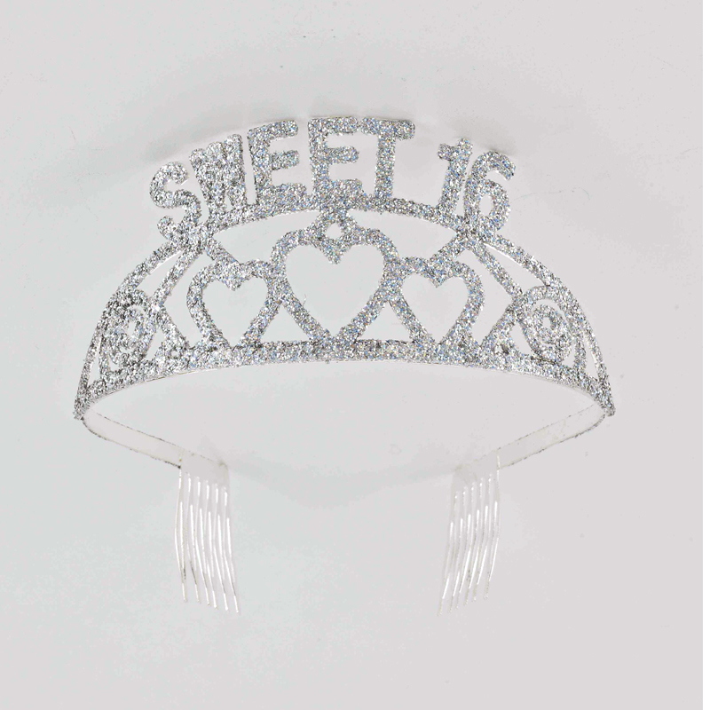 This silver, glittered, Tiara features the lettering SWEET 16. What a fun way to celebrate the day, and she will have a keepsake, too. Perfect for a Sweet 16 birthday celebration!