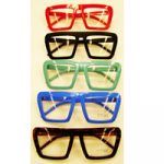 Squared Frame Sunglasses. These good looking sunglasses have a frame that is straight across the top – no dip over the bridge of the nose like most glasses. The frame is square, but tapered at the bottom.