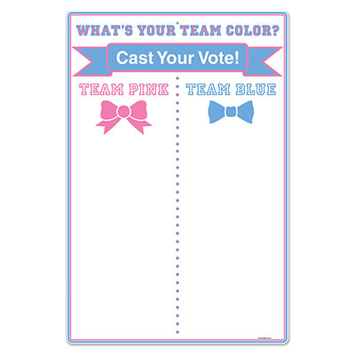 This tally board will be great at your next baby shower. You can also use this competitively between two teams. Team pink has a ribbon underneath the pink “TEAM” and a bow tie respectively.