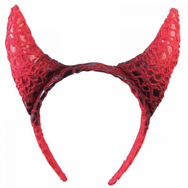 This is the most comfortable and coolest looking pair of devil horns on a headband I have seen in years. Covered with a red lace netting.