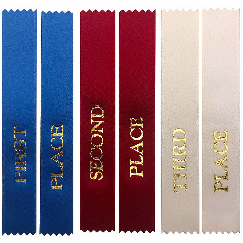 These thin flat award ribbon tails feature gold printing. They are perfect for enhancing rosette awards or creating your own custom awards. The Place ribbons measure approximately 1.25″ wide by 8″ long. Merit Award ribbons measure approximately 1.5″ wide by 8″ long. They can be fastened with a straight pin or safety pin; these are not included.