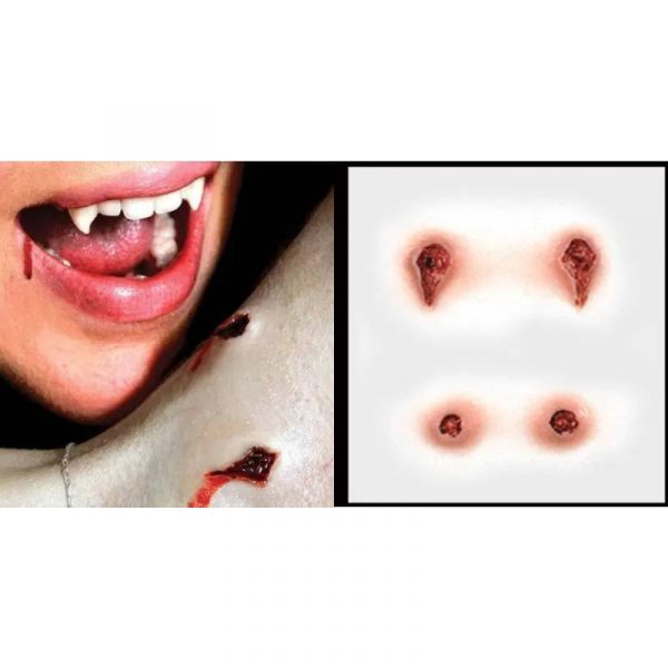 Vampire Bites stay on all night and the edges blend into your skin for an ultra realistic effect!. They are easy to apply in under a minute.