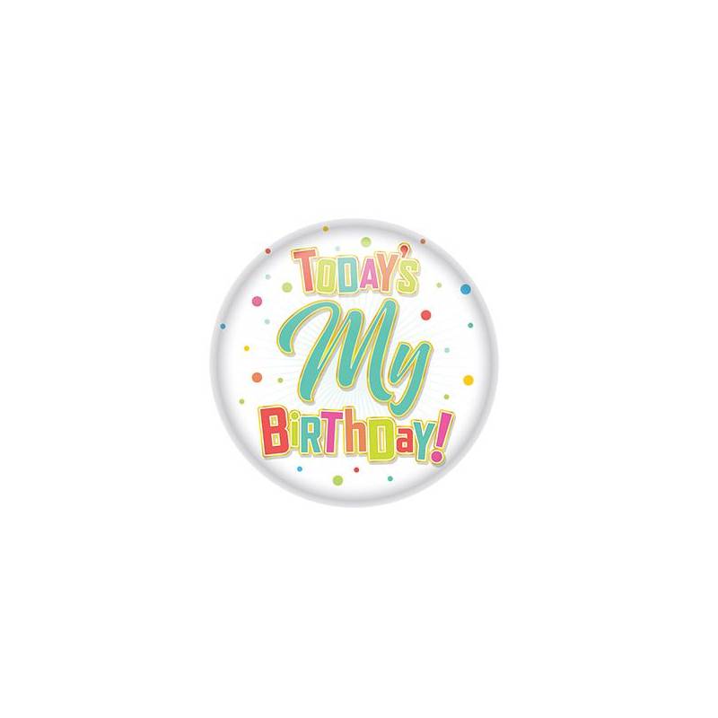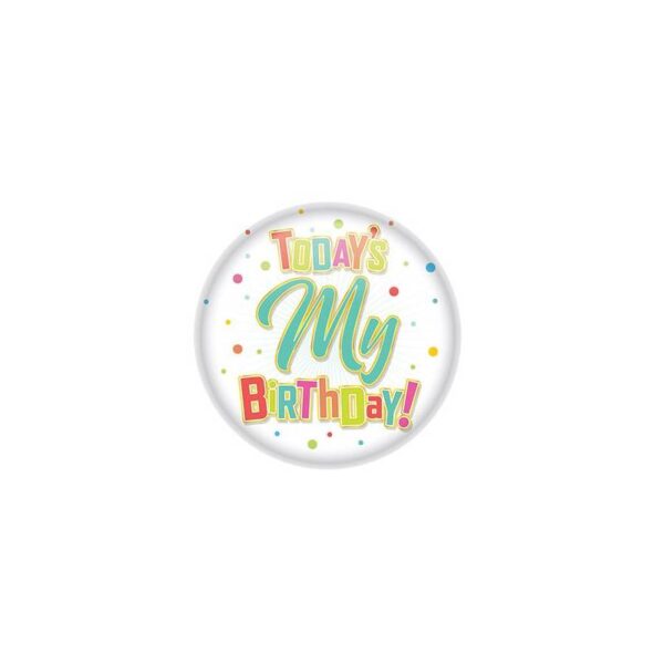 Today’s My Birthday Button is great for celebrating birthdays for most ages! Wear this to restaurant parties and house parties. Wear this to the office or to school.