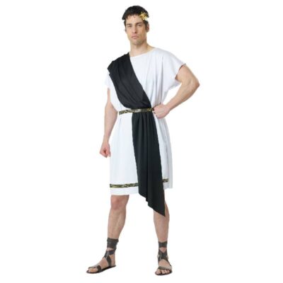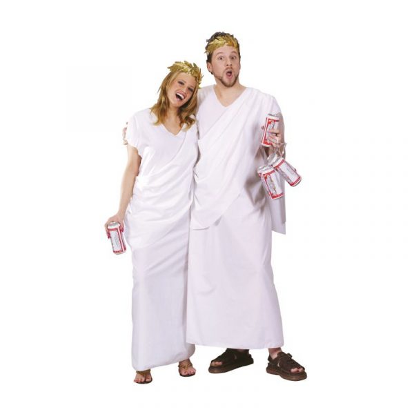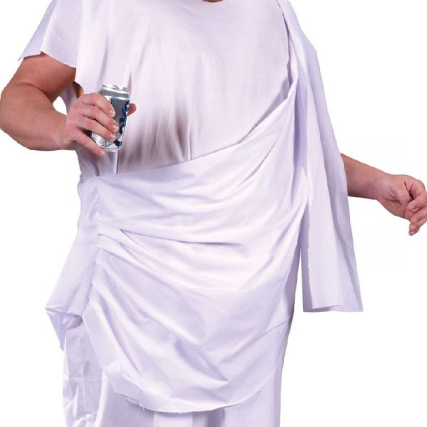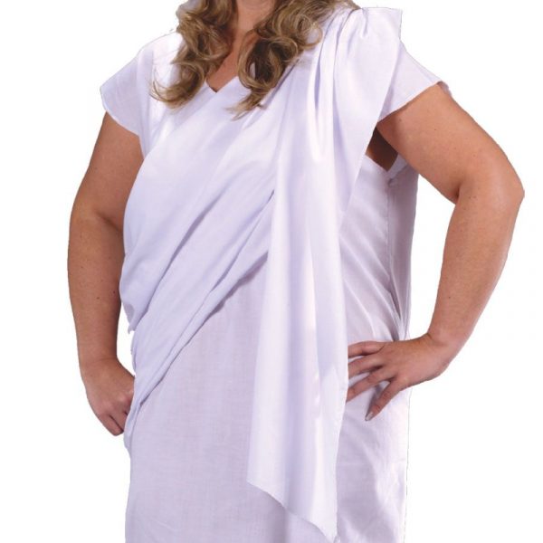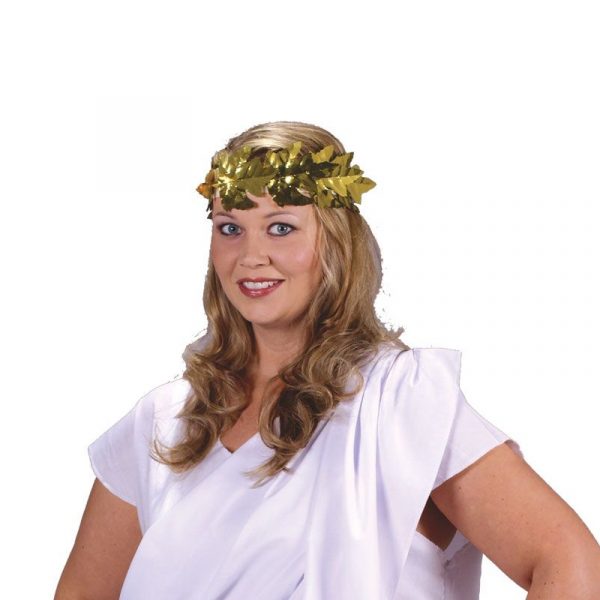 Toga White Adult Costume can be used for multiple events. Use this for themes including Roman, Greek, Egyptian, and biblical. This versatile tunic fits loosely around the neck and arms. There is rouching on one side of the hip where the shoulder drape originates. The drape is secured on one shoulder with more rouching. Wear this for Halloween, theatrical productions, reenactments, cosplay, school plays, themed parties and more. The gold leaves are glued to a white backing. It has a white elastic band to secure the headband to your head. This is an inexpensive costume that can be worn for different parties and events.