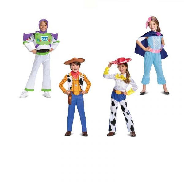 Your child can choose from 4 Toy Story 4 costumes! Choose Jessie, Woody, Buzz Lightyear, or Bo Peep. Available in X-Small, Small, and Medium.