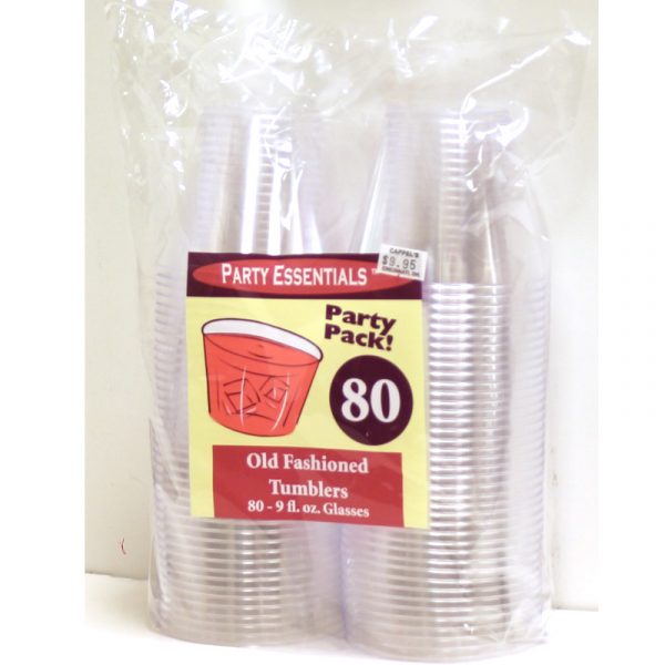 These disposable tumblers make for an easy clean up. They are 9 ounces each and come 80 in a pack. These tumblers are sturdy and a great option if you want to have a nice looking set up with out worrying if your favorite china will be broken. Also, these would be perfect for a camp out, cook out, and for any type of party!