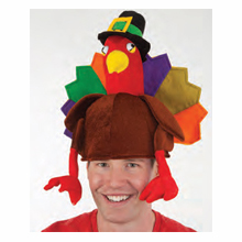 Gobble, gobble! Have lots of fun wearing your brightly colored plush velvet turkey hat.