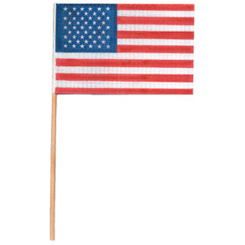 Fly this patriotic symbol for the Fourth of July celebrations and parade! This US flag is proudly made in the U.S.A. It is on a dowel stick.