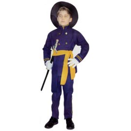 This authentic looking Civil War Union Officer kids costume includes jacket, pants, and sash. It is available in child medium and large.