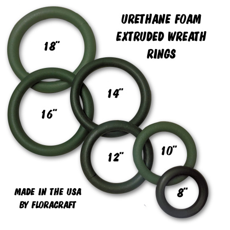 Create your own beautiful holiday wreaths or amazing props with these thick urethane foam rings, made in the USA by FloraCraft. They range in size from 8″ to 18″