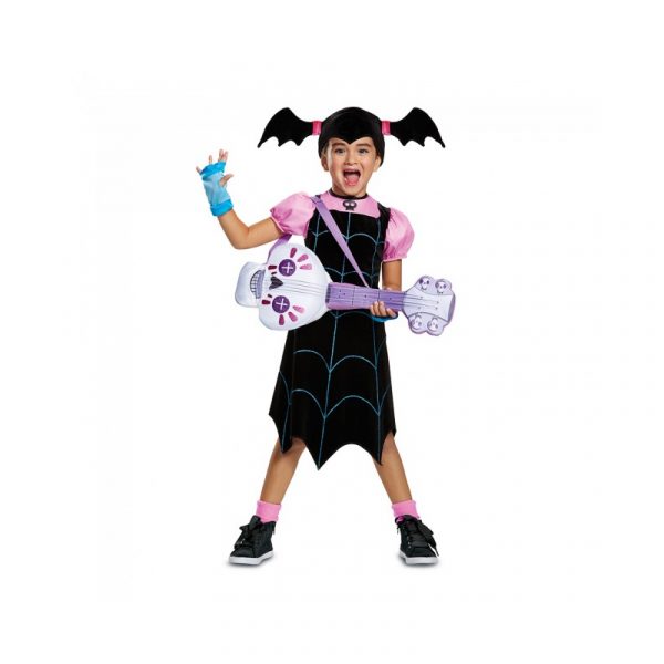 Vampirina the official Disney licensed character child size Halloween costume includes a dress, bat-wing headpiece, and blue glovettes. Add the 22 Inch Stuffed Fabric Vampirina Spookylele for the perfect accessory!