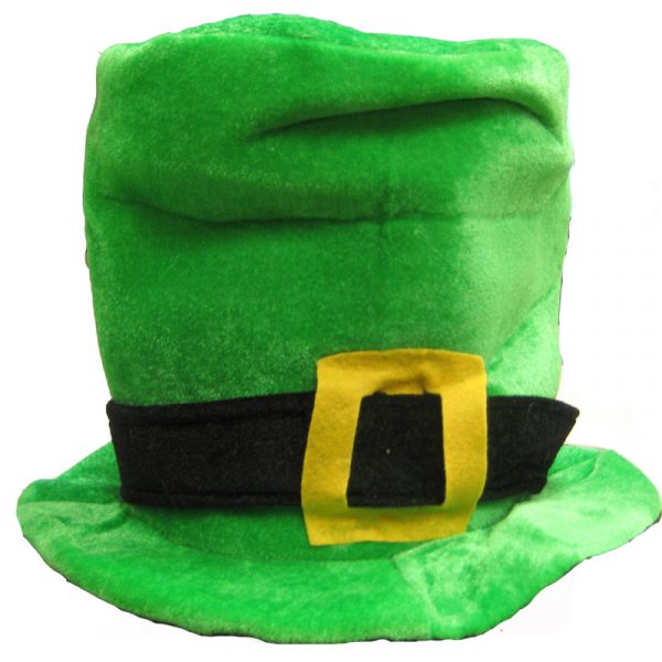 Velvet Leprechaun Hat is about 9″ tall and features a yellow felt buckle on a wide black velvet hat band. This is a great hat to wear for St. Patrick’s Day!