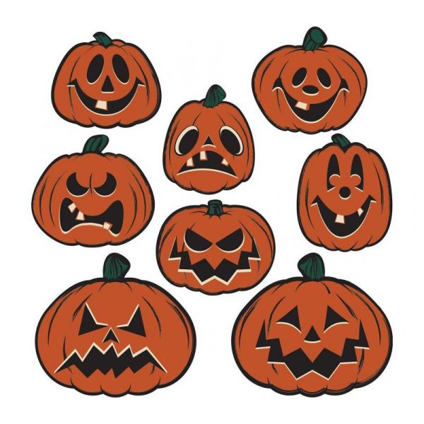 Vintage Halloween Pumpkin Cutouts take you through a range of emotion. Hang these for added fun to your Halloween party decoration.