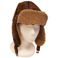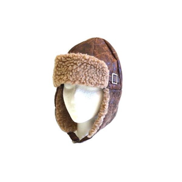 This brown aviator hat has the look of weathered leather. It has faux lamb’s wool and buckle accents. Perfect for your outdoor endeavors.