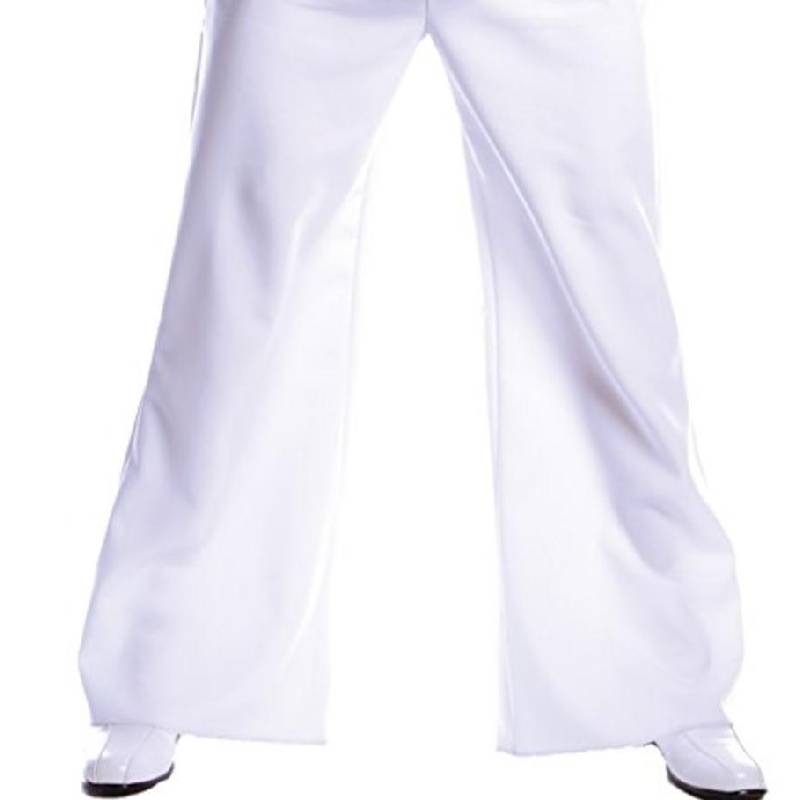 Bell bottom Costume Pants. These white bell bottom pants can be used as disco pants or any other 1970’s era outfit. Elastic waistband fits up to size 38 waist. This makes a great start for any number of Halloween costume or theme party outfits.