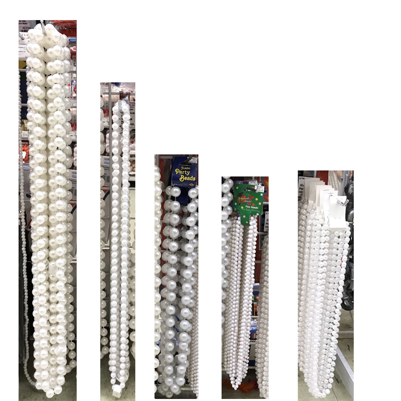 White Round Pearl Bead Necklace is a beautiful addition to any costume. Wear this for the roaring 20’s, plays or just playing dress up. Choose from several bead sizes and necklace lengths.