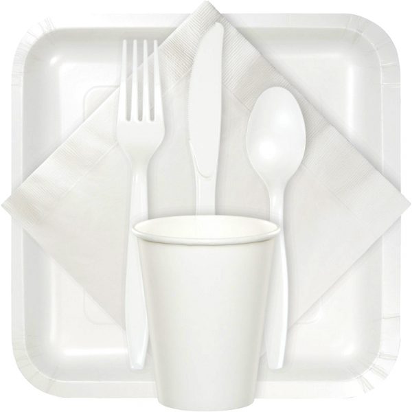 Striking and colorful, our collection of tableware includes a selection of White Tableware, Table covers and Utensils. Included in this collection are paper and plastic plates, cups, napkins, and utensils. This collection also includes several choices of table covers, as well as a matching table skirt. White tableware combines with other colors to make a bold foundation for your birthday party, luau, sporting or school event, or a host of other themed events.