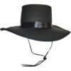 This wide brim, heavy felt, flat top, black hat is a great accessory for a Spanish theme or Amish theme costume. Wear it for Halloween this year!