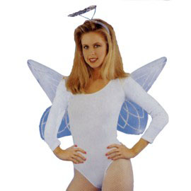 These white nylon glittered angel wings have elastic bands that fit over your shoulders. Perfect for theater, stage, costume or vacation bible school.