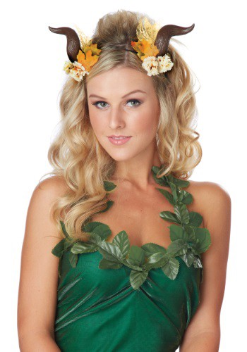 Woodland Fairy Horns Headpiece. Wear a Woodland Fairy Horns Headpiece to complete your mythical creature Halloween costume. Features horns and flowers on a headband.