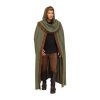 Woodland Warrior Cloak is perfect for Robin Hood costumes. This will also work for medieval, renaissance and barbarian costumes. This cape is forest green with brown accents. It is full-length cape with an attached hood and attached chest drape. Wear this for Halloween, themed parties, cosplay, drag, theatrical productions, hosting events and more.