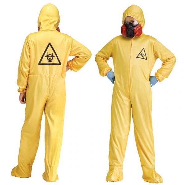 This Yellow Hazmat Coverall costume includes a respirator-style mask. Choose this Child Costume in size Medium or Large.