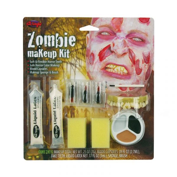 Feel “extra” amongst the walking dead and use Zombie Makeup Kit. It has glow in the dark liquid latex, blood, and teeth that will creep out any living human.