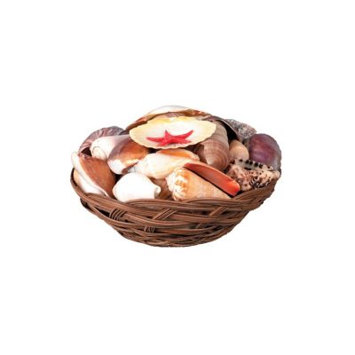Assorted Natural Seashells in Round Basket